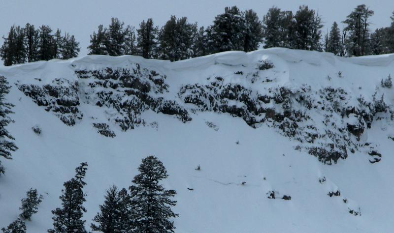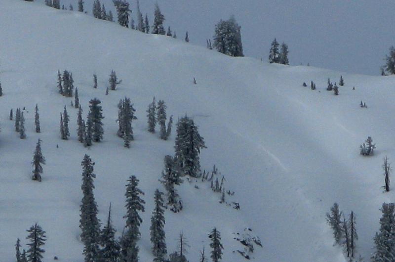 Note the large fresh cornice build-up on the South Ridge of Mt. Magog, a mostly filled in crown on the steep slope below.