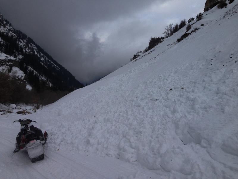 We took a long ride in Providence Canyon searching for the site of an avalanche incident involving riders from Wednesday. We rode all over upper Providence Canyon, attained views of the Rodeo Grounds, the steep east and north faces of Providence Peak and the north facing bowls and slide paths off Long Mountain or Millville Peak, and we did not see any evidence of avalanche activity other than a few loose wet sluffs down low and across from the Quarry.