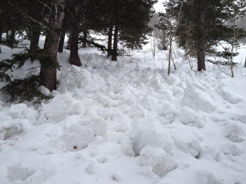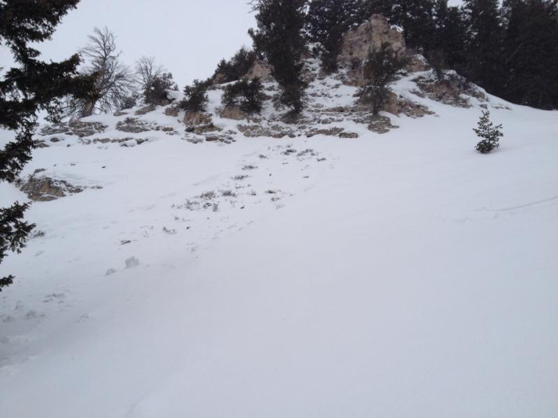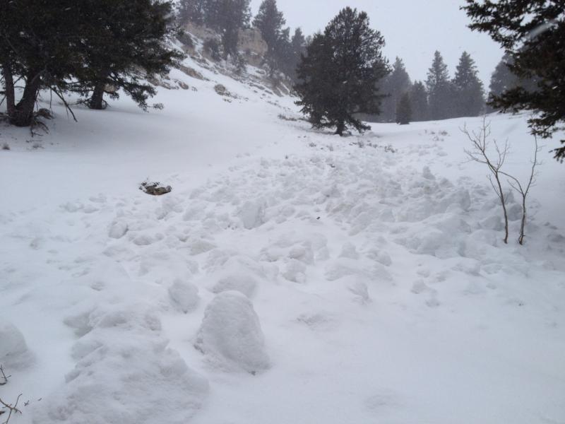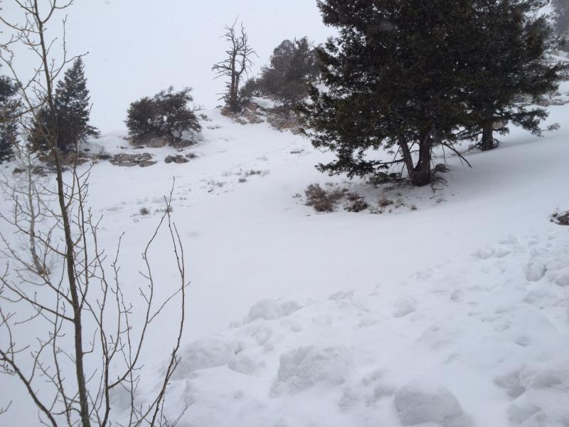 Found two old wet slides on the backside of Beaver Mountain, beneath the rocks south of the top of Harry's, area called Sparrows. One slide was 40x200' the other 20x250'. Notable for their location and their apparent punch. As powerful as any slide I've seen at the Beav anyway. May have happened last Thursday in the morning sun.