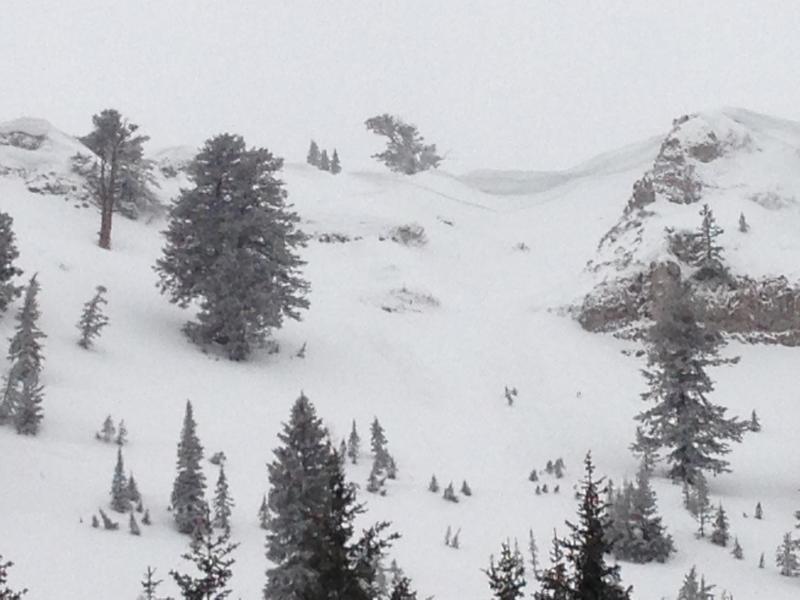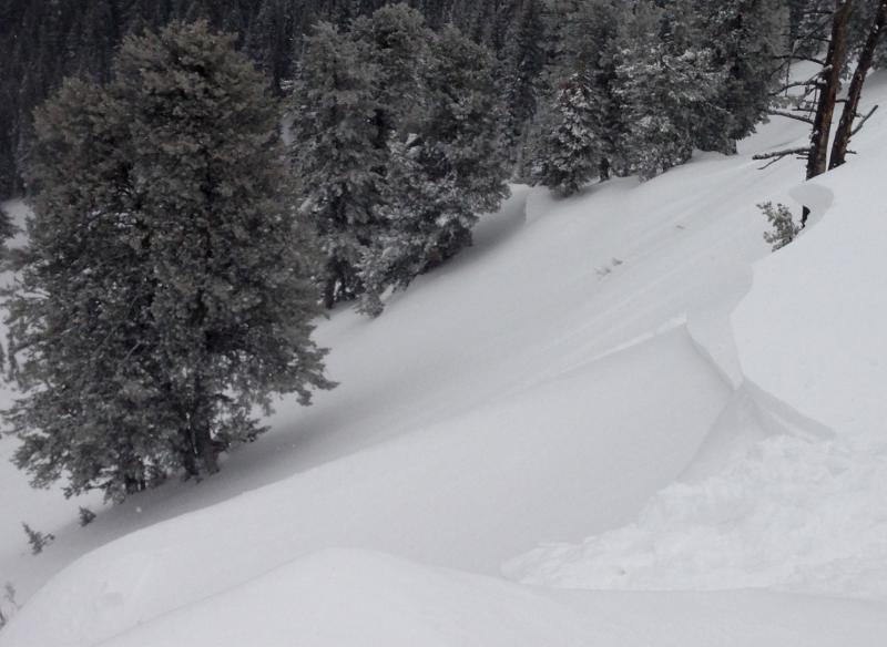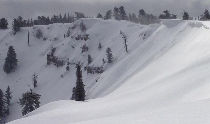 - The second photo is of some of the fresh natural activity in the central region of the bowl; cornice-falls and resulting small wind slabs. We saw evidence of other natural activity and a few natural wind slabs ran while we were in the area, triggered by cornice falls.