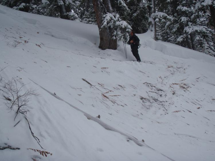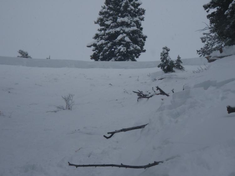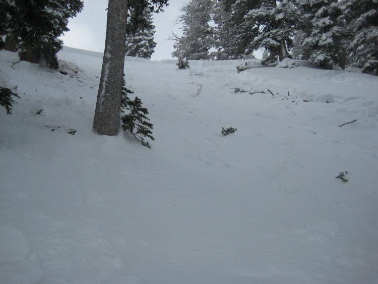 Here's a view of the crown and bed surface of one of the two avalanches....