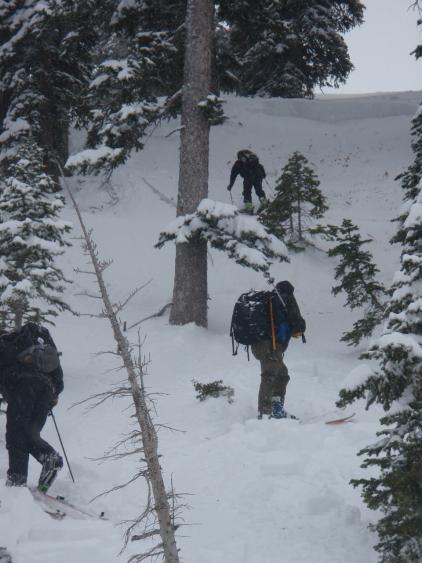 The party decided to ascend the path of the first avalanche, which became problematic....