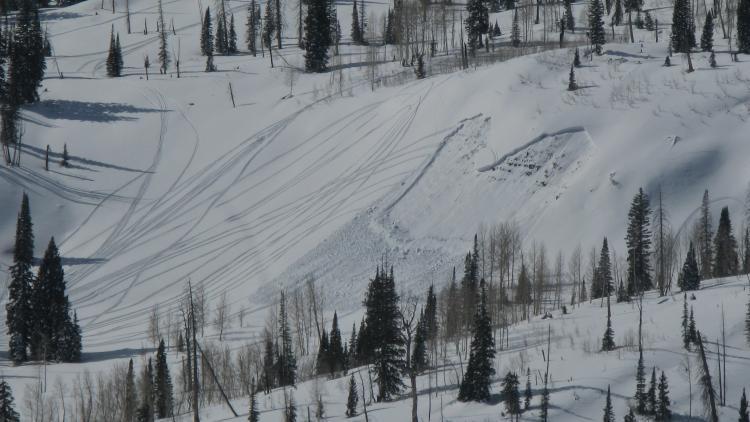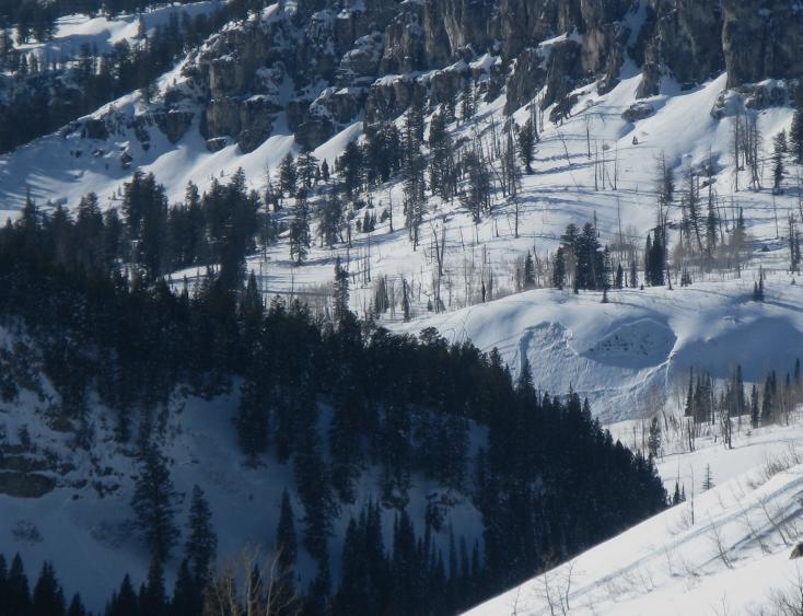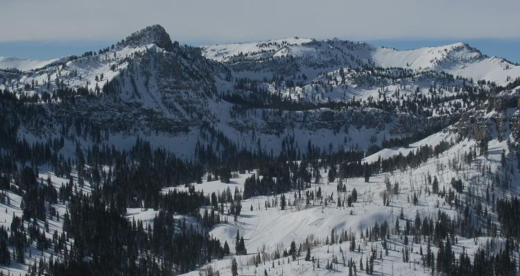 This angle is from the east, looking up White Pine. There are two recently triggered avalanches visiblein the photo, both from Saturday 1-30-10