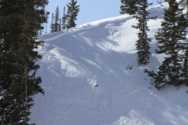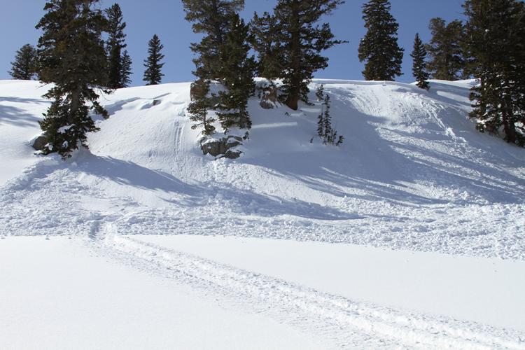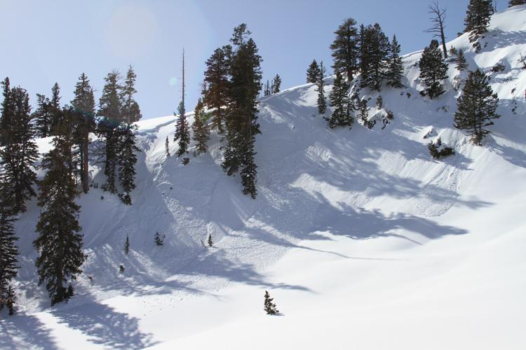 This slope was a repeater. It nearly caught a snowmobile party last weekend and looks to have made for another close call. Lo