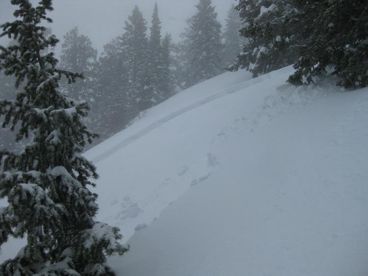 The small pocket in image #5 also pulled out. The entire slab was probably 100-150’ wide, with debris running maybe 200’ vertical through dense trees – it could have been a nasty ride. The complex crown shape basically mapped out where surface hoar had grown in the openings between trees. This slab was triggered at 8200' on a NE aspect.