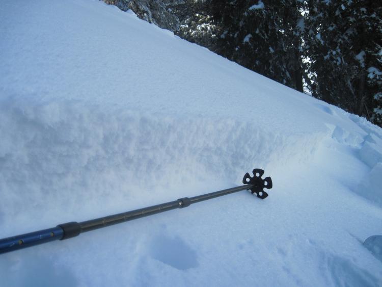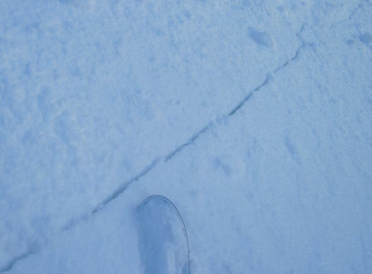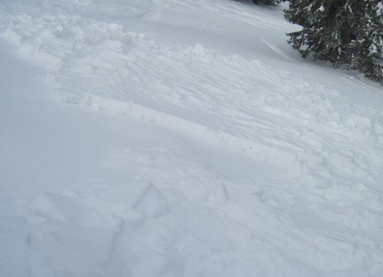 We came across two fresh looking slides today. One, at the top of the slope and the other at the bottom. The top one was small and didn't run far. New snow on buried surface hoar potentially. Cracks were apparent in the area surrounding the broken slab. I found a few more pockets while descending that "shattered" under my feet with no consequence.