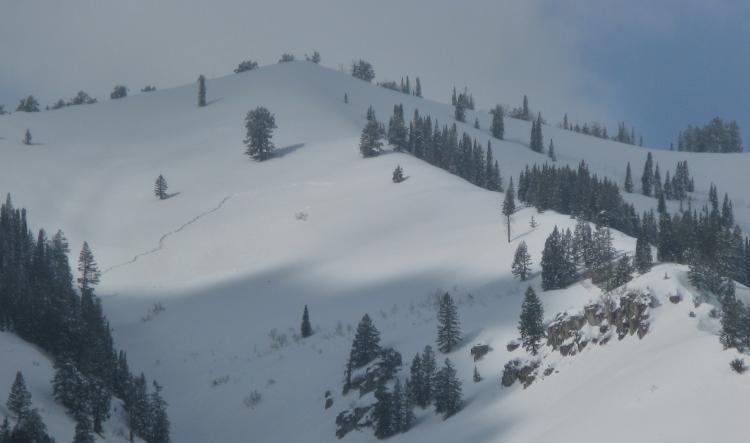 Here, shallow natural soft slabs are widespread and the crown of last month's huge deep slab release is still apparent...