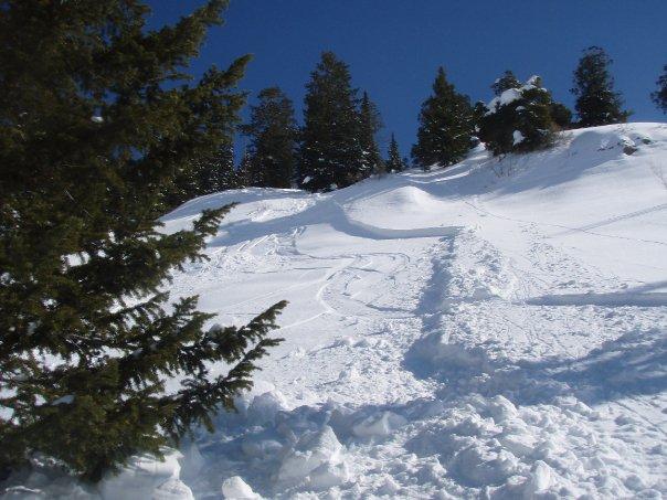 bluebird, 20-25 degrees, wind very light from west. Soft slab, north west, 8200 ft, crown broke off a roller ~38 degrees down onto a 30 degree slope, 1 ft. deep, 45 ft. wide, ran 60 ft, surface hoar on a hard layer,