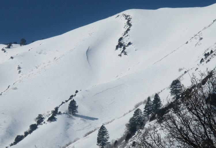 I noticed evidence of a fairly widespread natural cycle in the Wellsville Range from Friday's windy conditions...Most of the apparent activity involved shallow soft slabs and only the top layer of snow....Likely failing on surface hoar....