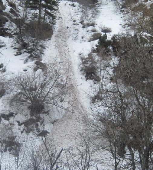 This small, dirty slide stopped a few feet short of a local popular hiking trail.