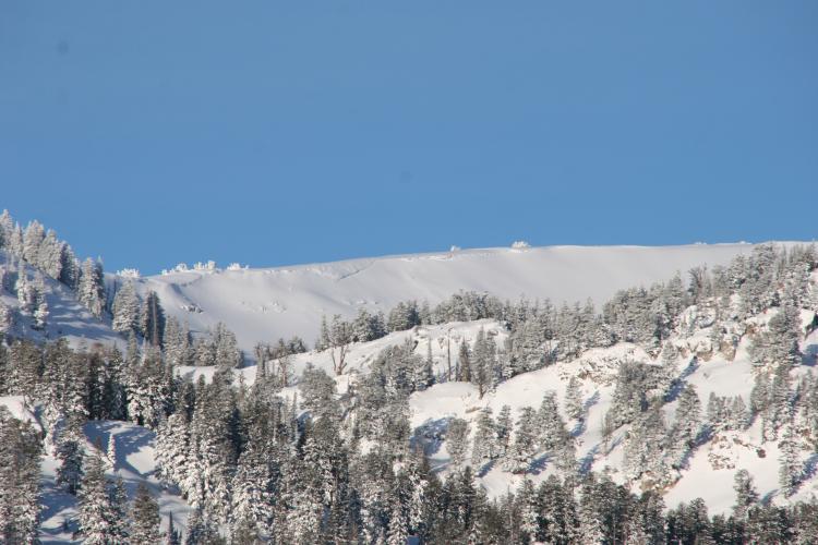 on the way in we spotted an older slab on cornice ridge. It is hard to tell for sure how big it was or when it occures but I would estimate several hundred feet wide and 2-4 feet deep. It happened on an East facing slope at about 9500 feet