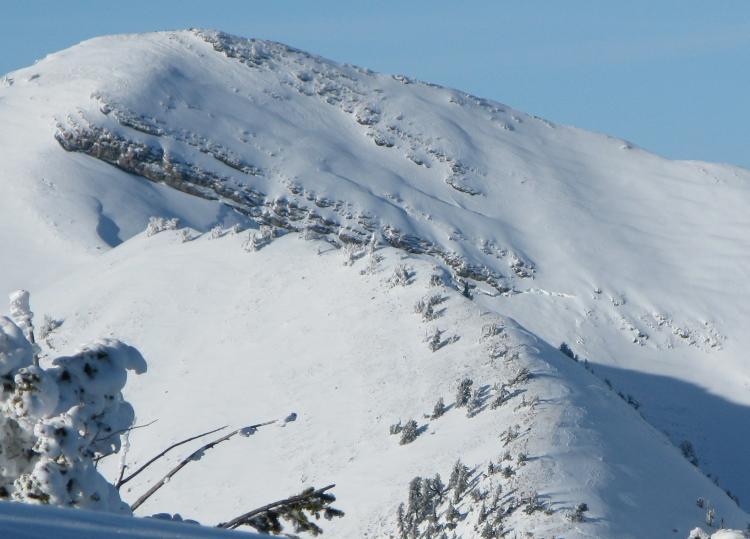 I viewed this natural avalanche crown from a distance. The avalanche likely occurred during the storm on around 11-23-2010.