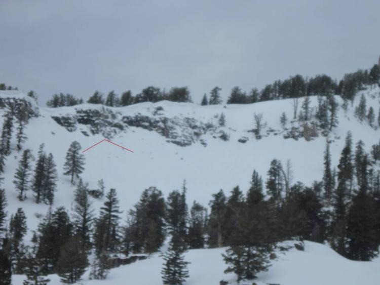 Just caught a glimpse of this small avalanche as we were riding nearby. Looks like a small slab maybe from last weeks cycle. No known trigger. It fits in line with what folks had observed last week. Pretty harmless pocket within the new snow.