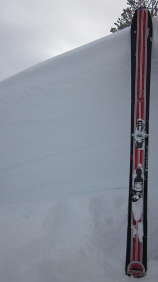 Darren is examining the deepest part of the crown (a solid meter deep here).... A 1F hard wind slab failed on facets above the 12-12-2010 rain-crust...