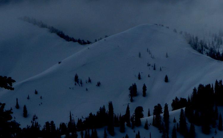 The older blown-in crown on Providence Peak is from an avalanche that probably occurred in the same time-frame....
