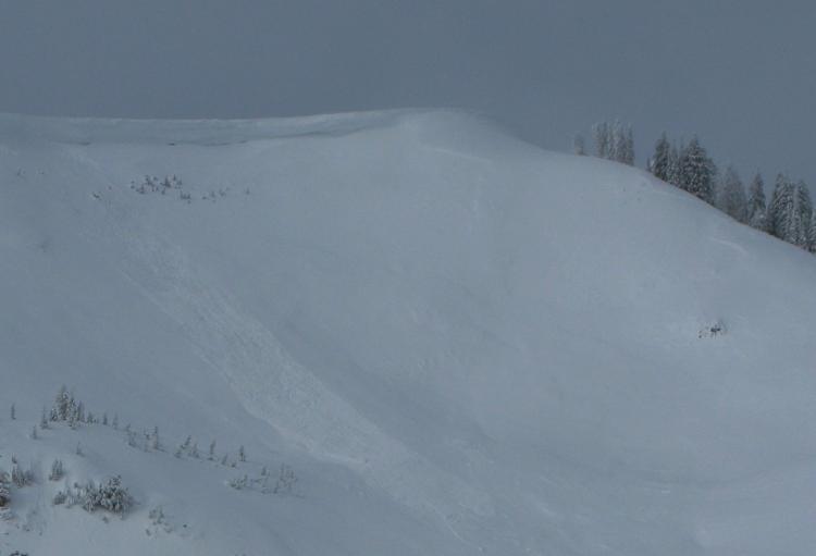 Here's a look at one of the bigger sisters from 12-21-2010.... The crown of the broad avalanche is mostly blown-in....