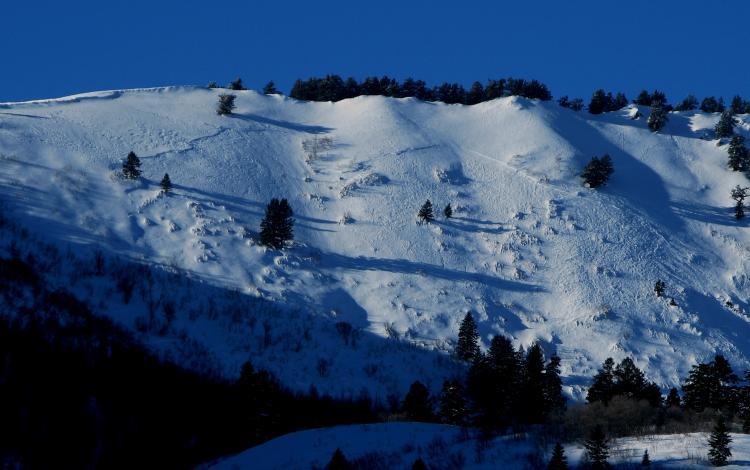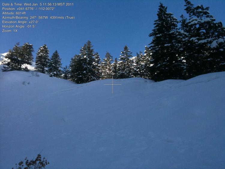 Most steep slopes in the southern part of the Wellsville Mountain Wilderness naturally avalanched during the 12-29-2011 storm.... Including this broad release north of Silver Mine Canyon on a south facing slope....