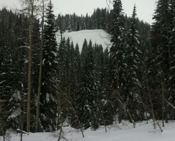 Nearly every slope bordering the west side of Tony Grove Lake had slid leaving large debris piles next to the lake. Most were 100- 150 feet wide and from 12 to 18inches deep running 100-200 vertical feet. These lines were filling in nicely and it was a bummer to see them flushed out from the rain and heavy snow.