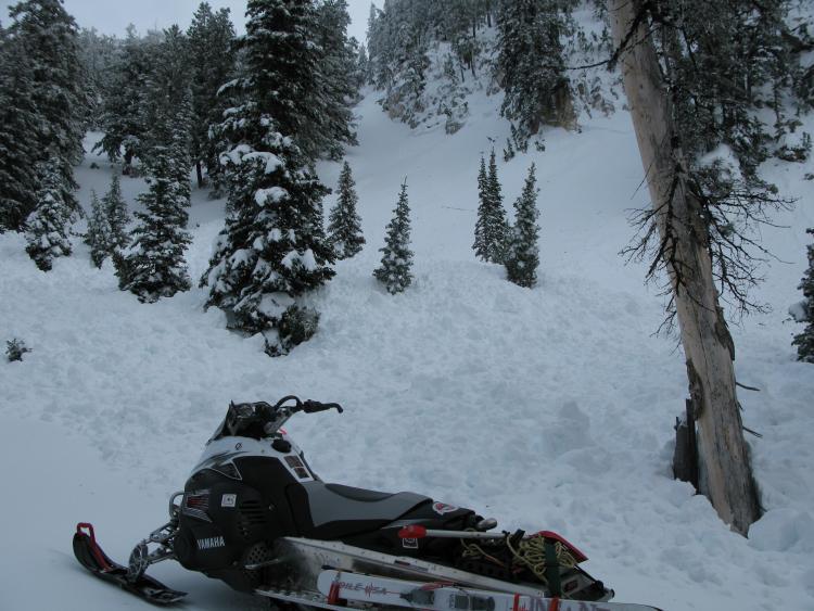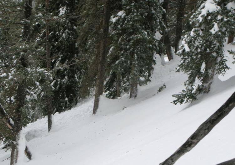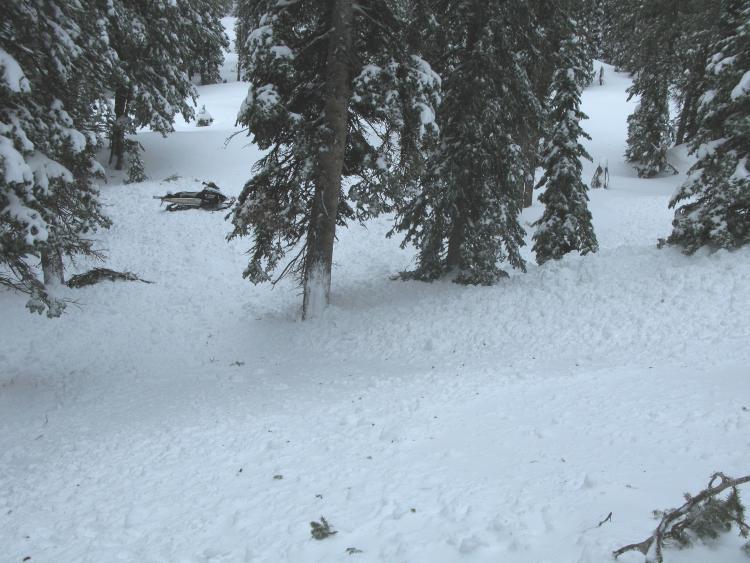 I kept running across more avalanches and piles of heavy debris as I continued to ride along the base of the steep slope....