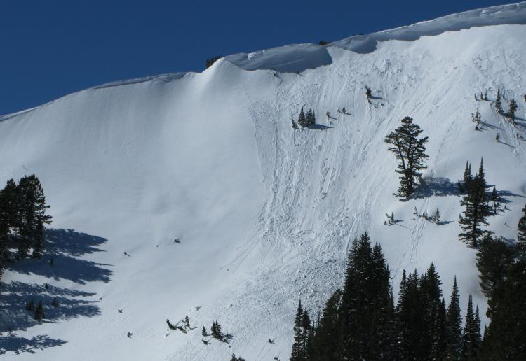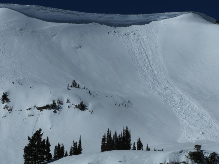 These natural cornice fall avalanches off the east face of Providence Peak occurred sometime on 2-28-2011, with strong and sustained south and west winds and plenty of drifting snow....