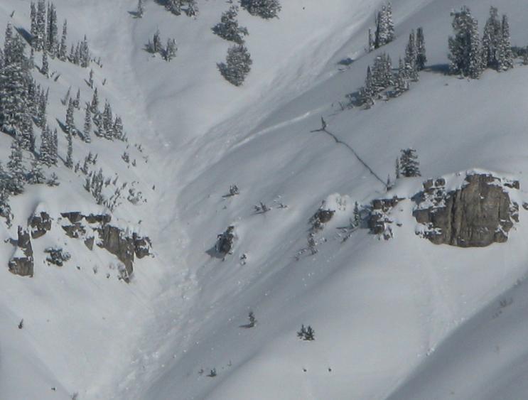 Could see this nice crown from Hwy 89.... The south facing slope certainly isn't the most common one in the area to see avalanches on..... The avalanche likely occurred near the end of the weekend storm, say, Sunday 4-10-2011....