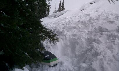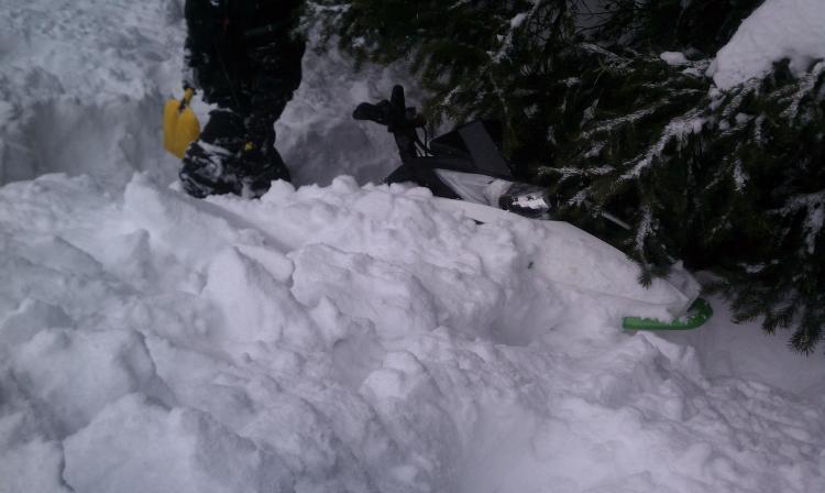 Snowmobiler caught, carried, mostly buried, recovered, ok.
