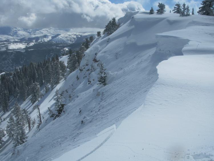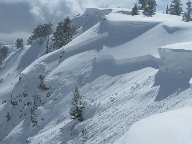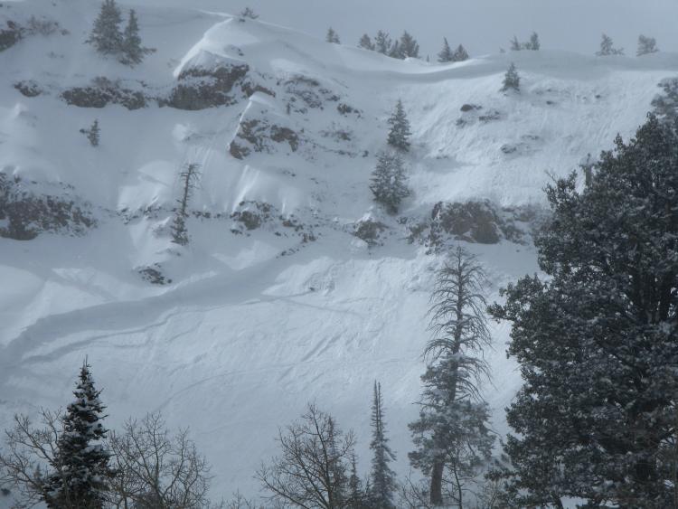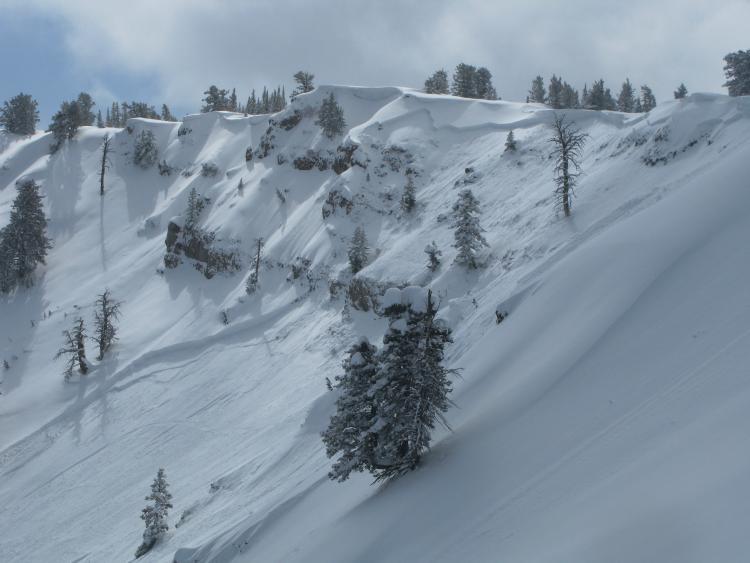 We remote triggered a small cornice fall from about 30' to the windward while walking along the ridge, which triggered a very large hard slab, 4 to 6' deep and maybe 500' wide. This in turn caused another wider pocket a few hundred feet north to sympathetic 2' to 3' deep and 800' wide.... ENE.....EAST....ESE facing, 9000' Repeater on January Facets/depth hoar. We accessed White Rock Hollow from Middle Fork, Providence Canyon
