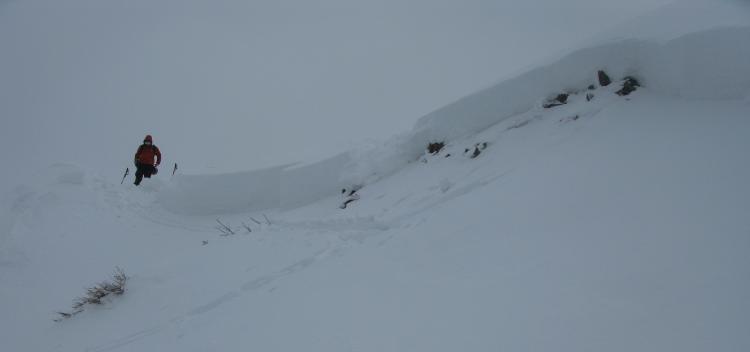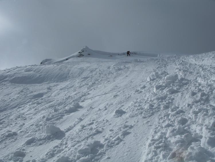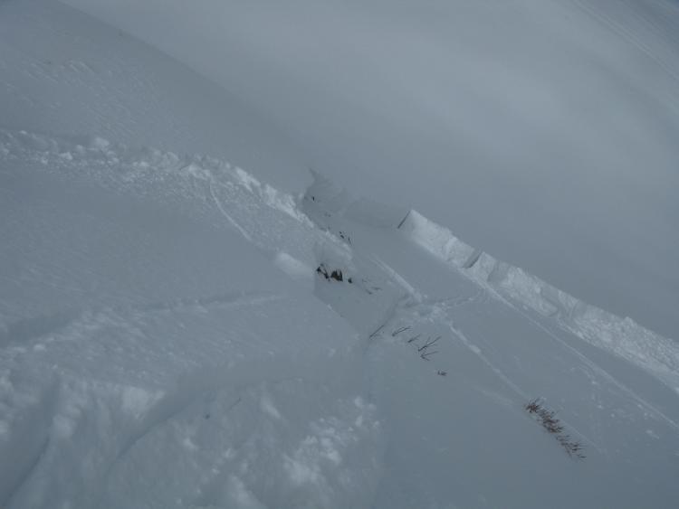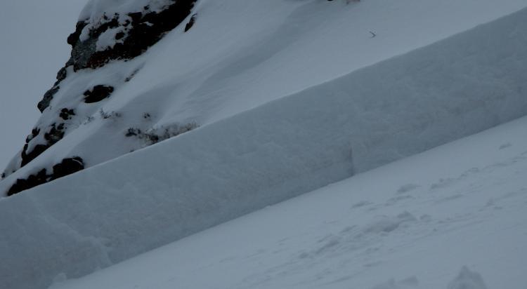 We witnessed the upper section of the southern flank fracture and go, and a large air-blast running way out over the low angled run out and in to the forest below.... The avalanche took out a couple good sized trees in it's path