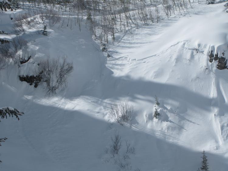 Noticed this small natural fresh soft slab avalanche near the Green Gate.. Must have occurred overnight since it wasn't there when I passed by in the evening of the 1st and several inches of snow fell in an intense burst around nightfall...