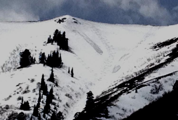 The 4-13-2012 natural is on the right and today's intentionally triggered avalanche is on the left as seen from Maple Bench