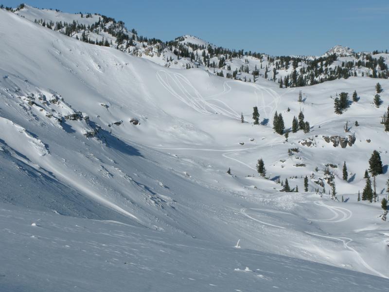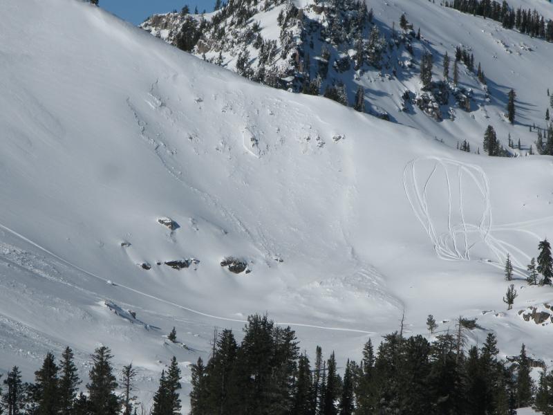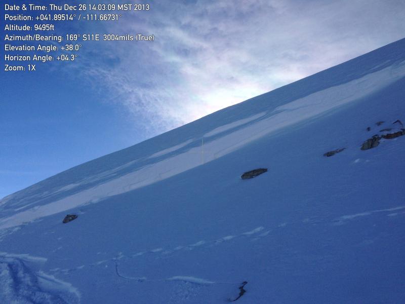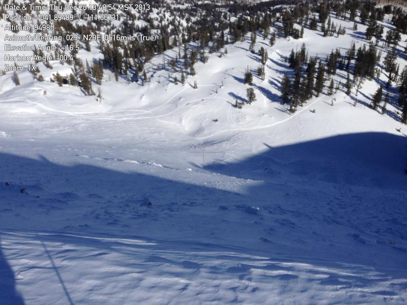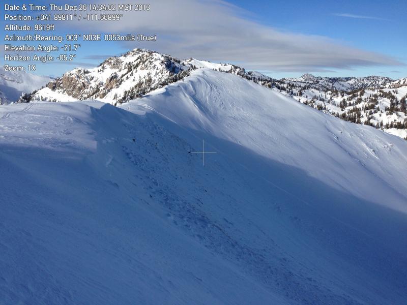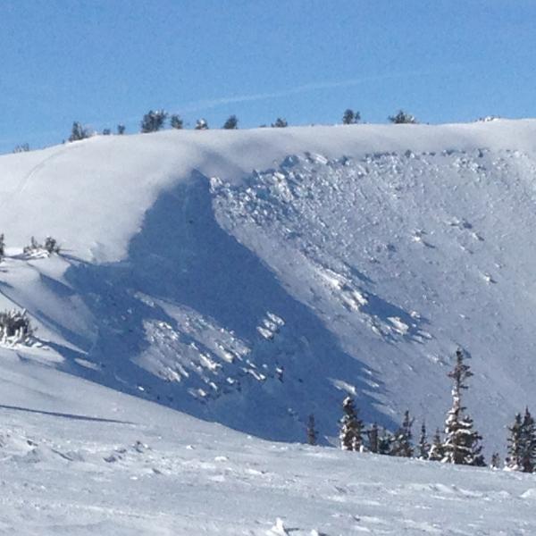 Photo and news of this very large natural avalanche was texted to us on Christmas Day by Norm Goltra, who was spending the Holiday in the Bunchgrass Yurt. A natural avalanche that occurred during a windy early morning storm front on Christmas Eve Cornice Ridge is a popular slope for sledding, but the shallow snow cover this season has kept people from being able to access it, and like most other large avalanche paths in the region it has been mostly untracked so far.