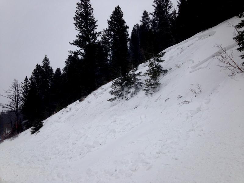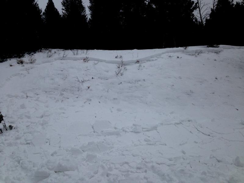 Had nowhere to safely park but the slab seemed to be primarily storm snow and slid on the old snow interface.