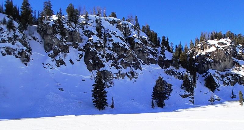 Here is another shot of the slide in Rock Bowl. It was surprising to see how far the avalanche traveled up the skiers left wall.