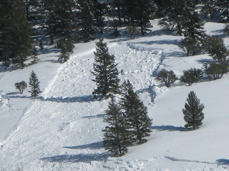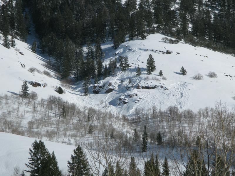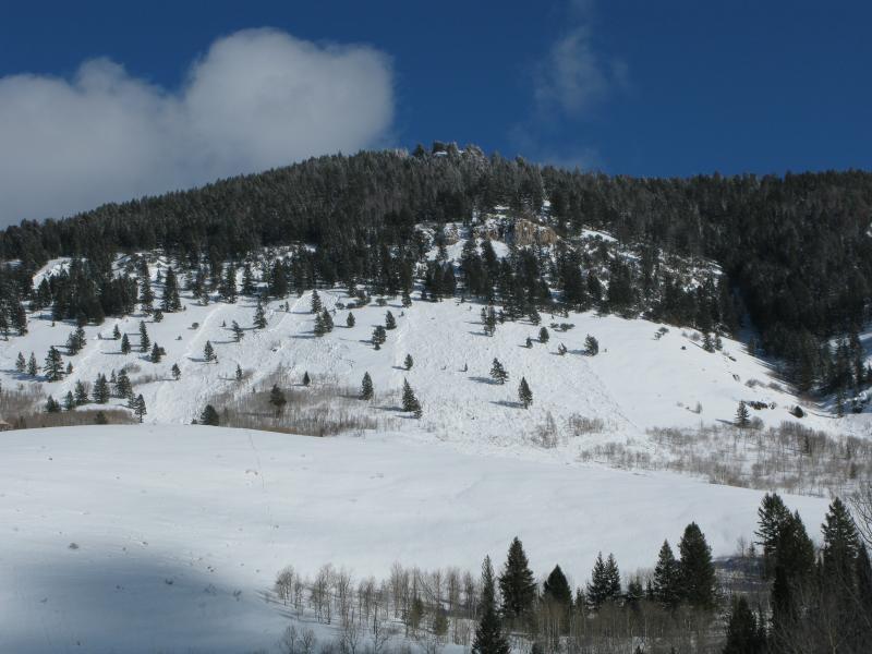 We took some photos of these slides in the early afternoon. I did not notice them on a trip up the canyon on Sunday and they appear quite fresh. Perhaps naturally avalanched with first sun on the slope in mid morning?