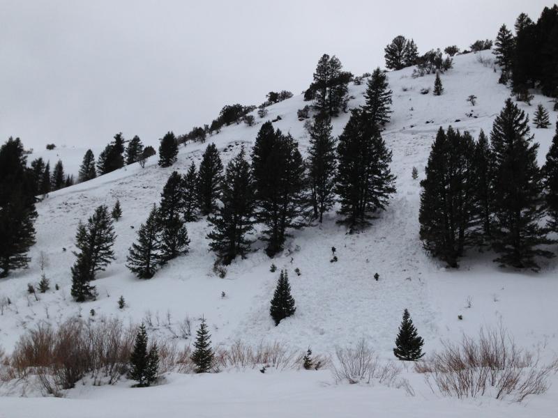 These slides were not there on the way up to Beaver Mt to patrol this morning. Saw them on the way home about 5 PM. Also observed an avalanche off one of the hight peaks above wood camp but it was too dark for photo.