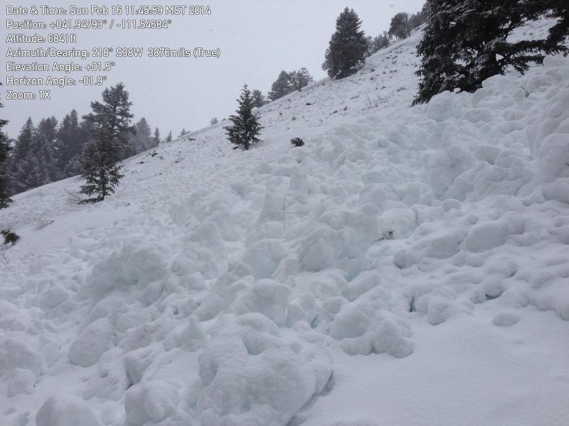 I had a look at the avalanche (s) on 2-16-2014 and added the video observation and some more photos to the report. I'm not certain that this was a natural or not, as I observed relatively fresh snow board and foot tracks in the area. The avalanche failed on faceted snow or depth hoar in the basal layers of the snowpack. Not exactly a wet slab, more moist, but the lower elevation snow was recently saturated by rain and temperatures were quite warm.