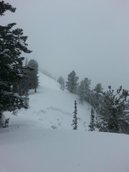 Went for a walk and some turns on the north ridge of Dry Canyon. Upon gaining the ridge to Logan Peak we saw some very recent avalanches dropping north into the Logan Canyon side of the divide. Hypothesis: this week's storm snow and wind were the straws that loaded up the ridge and broke the camel's back. Looked to be post-thaw-freeze cycle. Grabbed photos of two independent, large slides and saw a third, but couldn't safely get good looks at any of them. All dimensions are estimates. Note crowns in foreground and background of first photo.