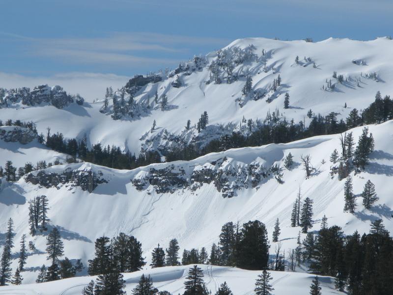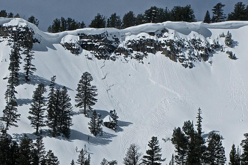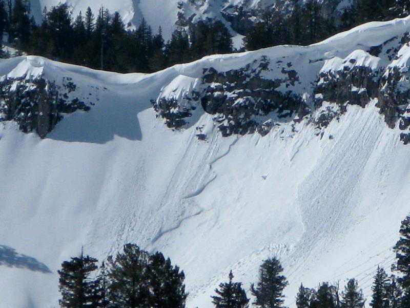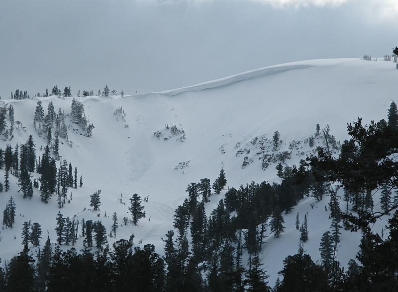 I also noticed this small wind slab release on Cornice Ridge from a good way away, also likely triggered by natural cornice fall.