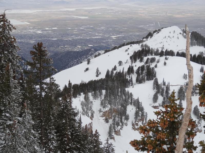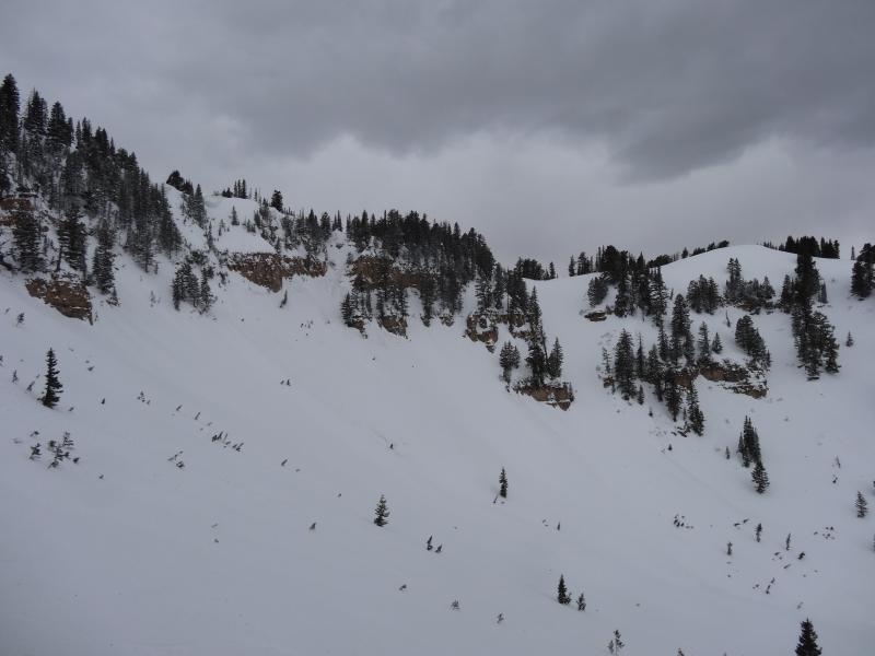 A roller ball likely triggered this slide on on the north east face of the Logan Peak cirque in Mill Hollow. Fracture line was about 500 feet wide and run several hundred feet down but not all the way to the bottom.