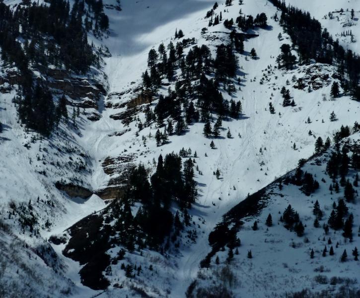 A few WL-ASc-R1-D2-I triggered today while descending. Aspects ranged from NE-SE, starting elevations 9600 to 9200ft. Slides were predictable, though entraining well and running fairly fast on the old crust. Because of the nature of the terrain, they went for a long vertical ride.