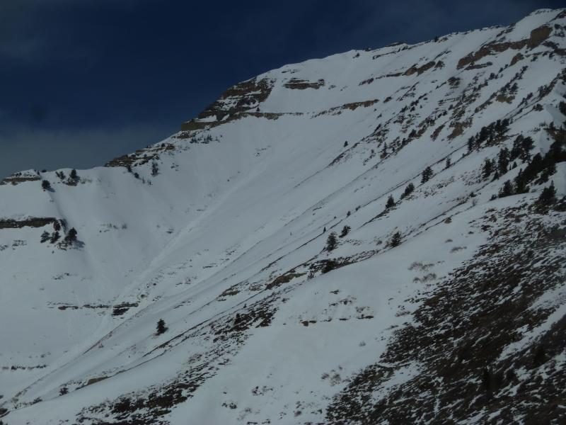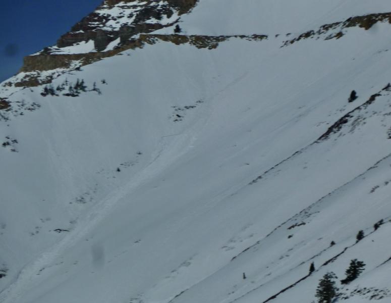 Recent activity in Slide Canyon consisted of a few wet loose that entrained enough mass to initiate some pockets of wet slab on its journey downhill.