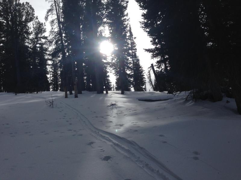 In sheltered shady terrain we found some well developed and intact feathery surface hoar or frost crystals on the snow surface. These and/or the sugary facets just below may well become a persistent weak layer when buried and then overloaded.