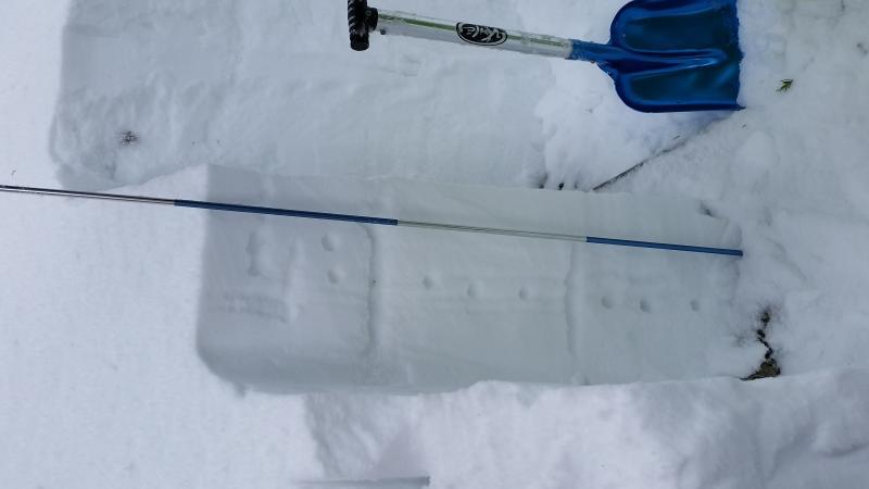 We headed up to Millville Peak and dug a pit at about 9100 feet on a Northwest facing, 38 degree slope. Pit tests showed a compression test failure on 26 hits on a graupel layer down about 10 inches. With one additional tap, the column failed on the interface layer between old November snow and the solstice storm snow down about 22 inches on 1-2mm facets. Extended Column tests failed on the faceted layer on about 27 taps but did not propagate (ECTN26). Total snow depth at 9100 feet is around 40 inches.