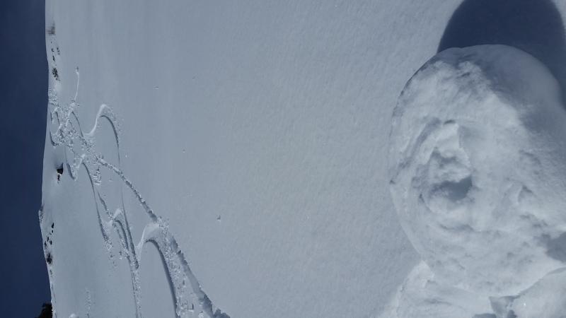 We found the best riding on slopes face northeast to southeast. The Southeast facing slopes started getting pretty wet at mid-day and produced decent sized rollerballs on steep slopes.