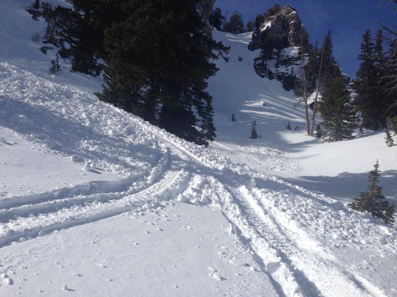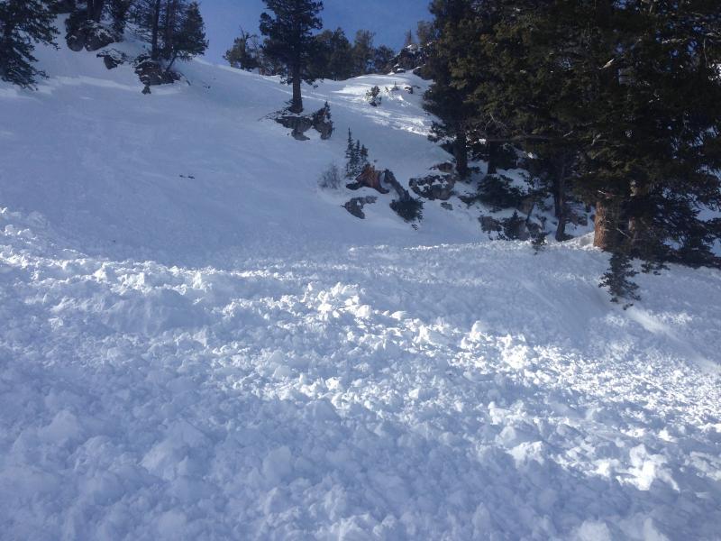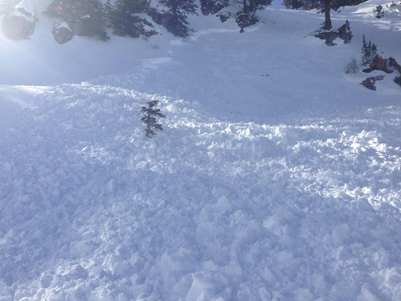 Details unclear and incident unreported. At least two sets of tracks entering avalanche, both entering from the top and the lower right flank... Many fresh tracks noted on the debris as well.