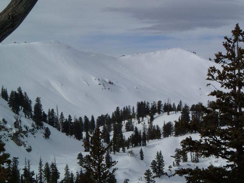 We were riding in an area that had a good view of Cornice ridge. Winds were gusting throughout the day moving some snow. At about 2:00PM a cornice broke off the ridge on an ENE facing slope and slid 2/3 the length of Cornice ridge. The cornice released a slab about 100 feet wide. It looked to be a couple feet deep right under the cornice.