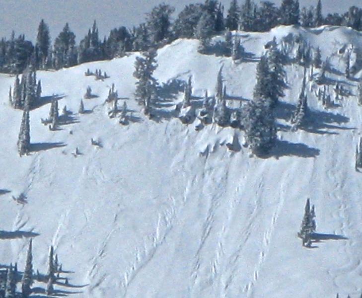 The west wind wasn't all that strong overnight, and many slopes were spared the effects of drifting. But, significant drifting did occur in some areas like the Beaver Mountain saddle where I found 3' deep drifts of fresh snow.