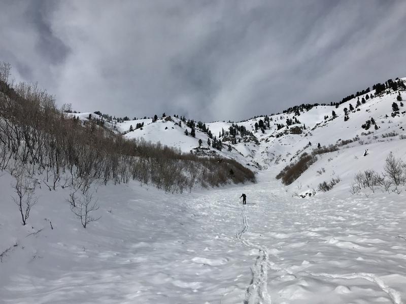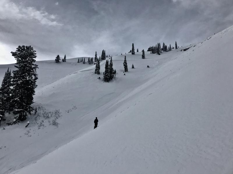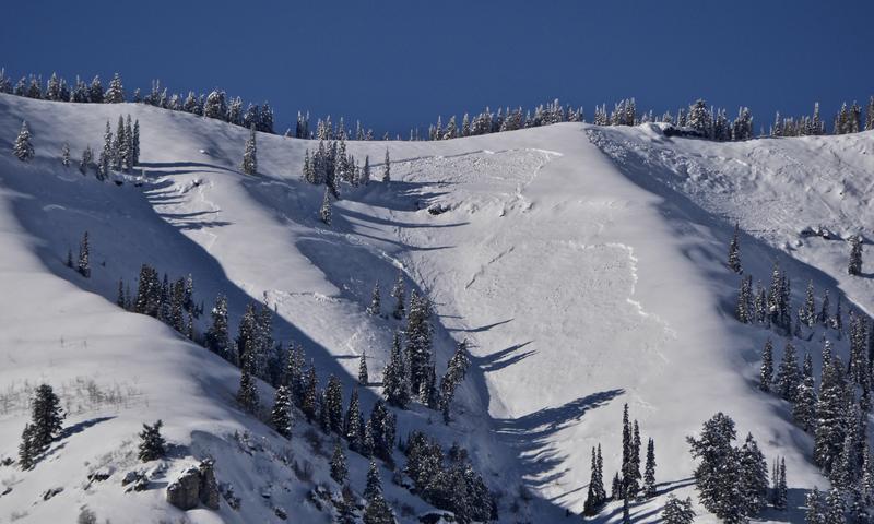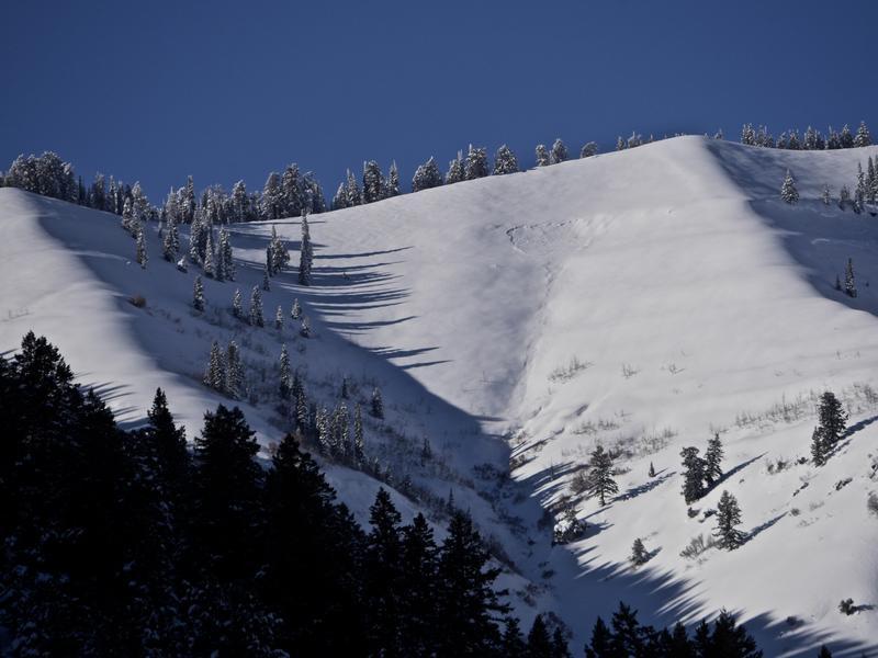 On my way way up Logan Canyon on 12-15-19, I could see a several large recent natural avalanches in the NE---S facing Wood Camp Bowls. The complex of significant natural activity featured avalanches 2' to 3' deep and hundreds of feet wide, running around 2000 vrt' in a common gully down to an elevation of 6500'. The avalanches failed on a thin persistent weak layer comprised of sugary faceted snow, above a melt-freeze crust and the stout layer from the moist Thanksgiving storm.