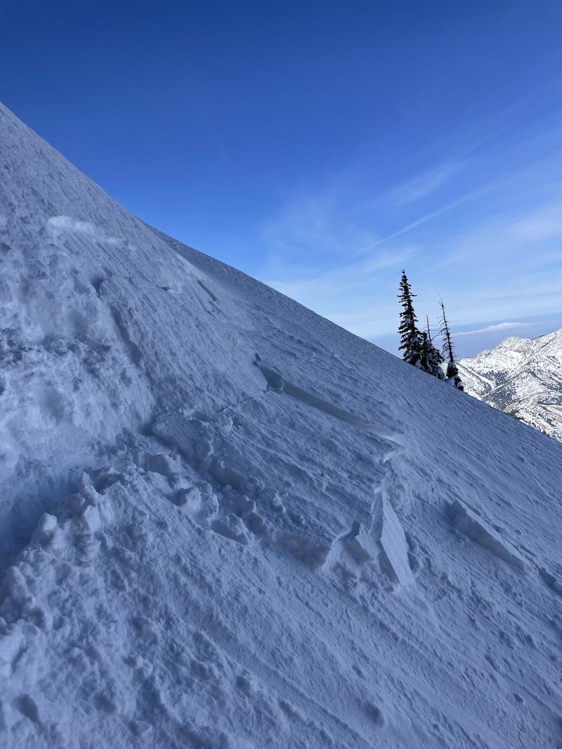 Climbing up rampage - skier triggered wind slab pocket right as we exited the ramp and turned towards the upper shot. Expected to see reactive wind slabs with the obviously winds and the forcast, and knew we would turn around the moment we encountered anything questionable. Slab propagated 20' and we quickly stopped and transitioned.