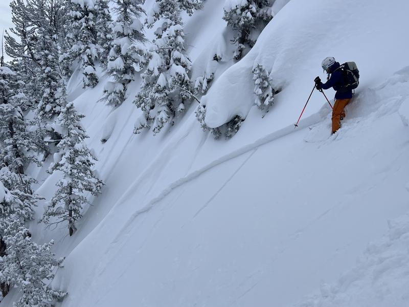 We did a ski cut at the top of memorial #1 which easily triggered the pictured avalanche, 8" at the deepest part of the crown and ~25' wide. Failing on new snow/old snow interface.